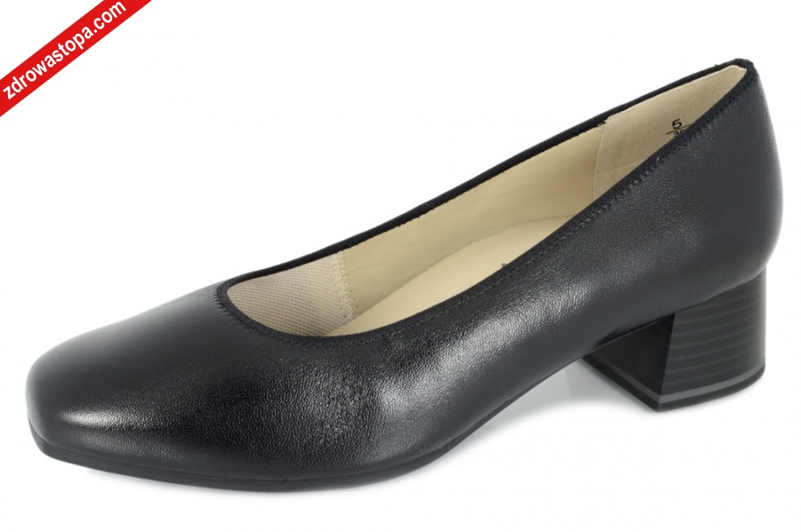 Dodatkowe informacje: specjalna linia obuwia damskiego eleganckiego, lekka sprężysta podeszwa pochłaniająca mikro-wstrząsy, podeszwa antypoślizgowa umożliwia bezpieczne poruszanie się na różnych nawierzchniach, szeroki obcas stabilizuje postawę. poszerzona tęgość ''H'' (szersza). Wkładka wyścielona naturalną skóra, posiada system " onAIR " bazuje na zaczerpniętej z natury konstrukcji plastra miodu, gwarantuje szybkie odprowadzenie wilgoci, przepływ wewnątrz obuwia oraz doskonałą amortyzacje. Obuwie spełnia oczekiwania najbardziej wymagających odbiorców. Idealne dopasowanie do kształtu stopy.