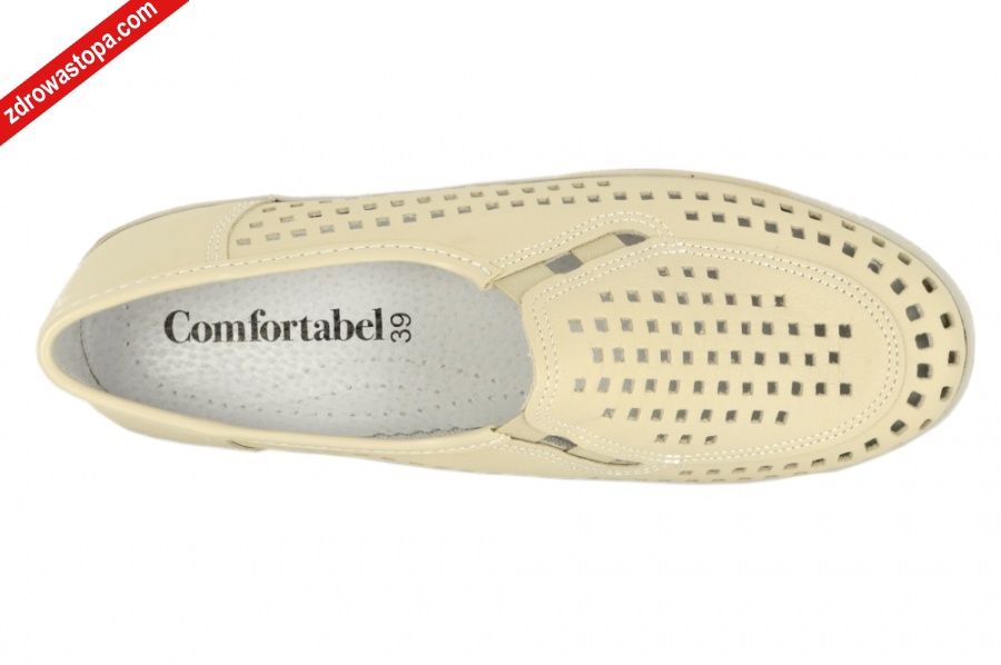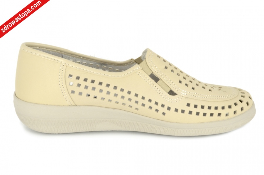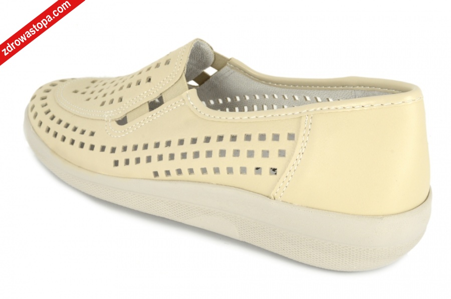 Dodatkowe informacje: Obuwie wsuwane, gumki po bokach dopasowują się do stopy i dobrze ja trzymają, wykonane z miękkiej skóry naturalnej. Bardzo lekkie, posiadające wyjmowaną wkładkę, elastyczne spody i antypoślizgową podeszwę.