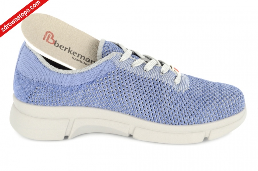 Dodatkowe informacje: Jest to obuwie niemieckiej firmy BERKEMANN istniejącej od 1885 roku. Posiadają bardzo dobrze wyprofilowane wkładki wymienne, ponadto posiadają punkty na piętach amortyzujące mikrowstrząsy. Wyścielone skórą garbowania roślinnego. Rozciągliwy i przewiewny materiał tekstylny zapewnia idealne dopasowanie do stopy bez ucisku wrażliwych miejsc. Obuwie dobrze trzyma się na nodze i zapewnia najwyższy komfort noszenia. Dzięki wyjmowanej wkładce można stosować zamiennie wkładki ortopedyczne. Podeszwa lekka elastyczna nie ślizgająca się.
