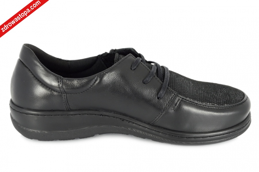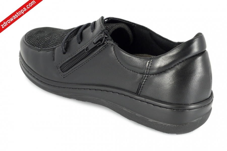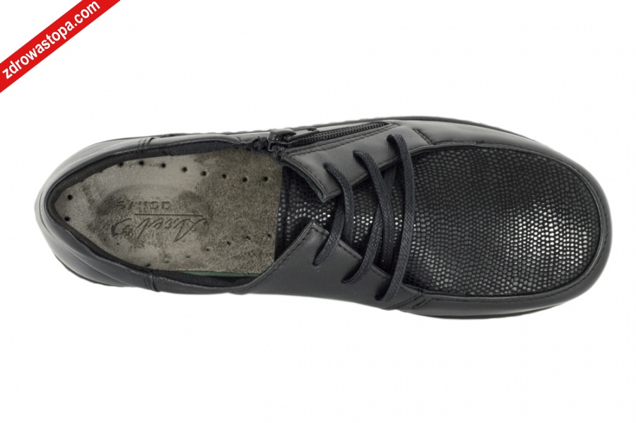 Dodatkowe informacje: Obuwie sznurowane wykonane z miękkiej skóry naturalnej lico, przednia część strechowa dopasowuję się do stopy, suwak ułatwiający zakładanie. Spód szeroki antypoślizgowy. Wyjmowana profilowana wkładka którą można zastąpić na swoją.