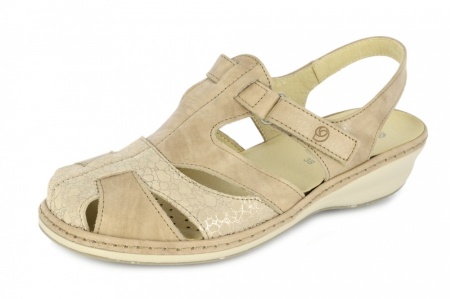Dodatkowe informacje: Zakryte palce. Skórka bardzo miękka dla stóp wrażliwych. Zapinane na rzepę. Wysokość obcasa 30 mm. Wkładka ze skóry naturalnej, wyjmowana. W poszerzonej tęgości H. Spody bardzo lekkie i elastyczne, antypoślizgowe.