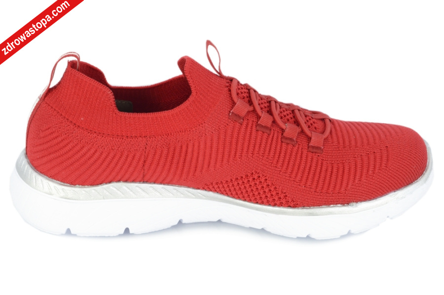 Dodatkowe informacje: Obuwie damskie wykonane z elastycznego i przewiewnego materiału. Miękka, piankowa wkładka memosoft. Spód antypoślizgowy. Bardzo lekkie i elastyczne.