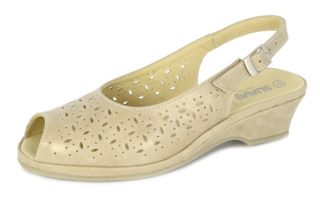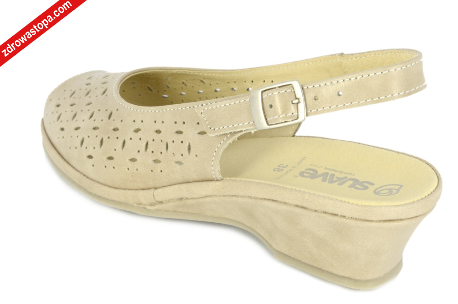 Dodatkowe informacje: klamerka do regulacji obiętości pięty. Jeden z wygodniejszych sandałów na lato. Skórka bardzo miękka dla stóp wrażliwych. Wysokość klinu 40 mm. Spód antypoślizgowy.