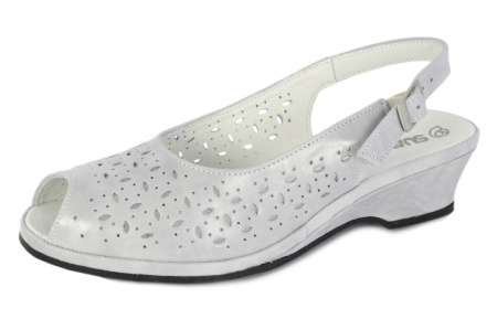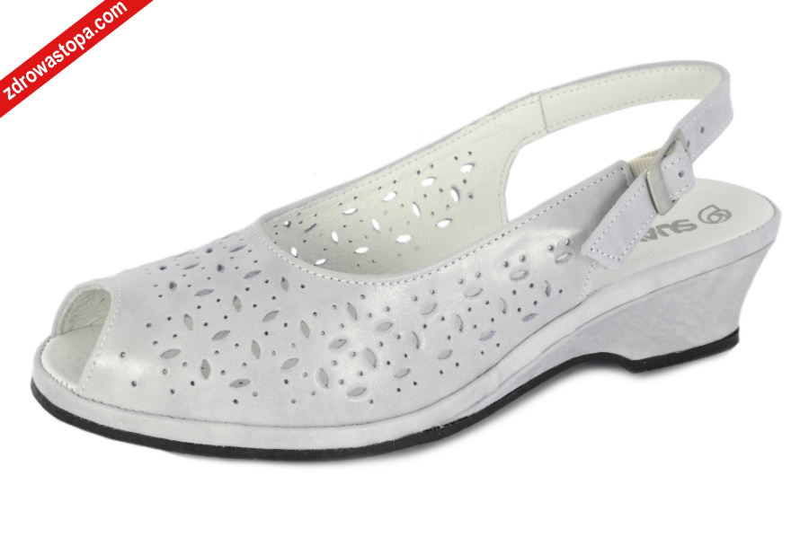 Dodatkowe informacje: klamerka do regulacji obiętości pięty. Jeden z wygodniejszych sandałów na lato. Skórka bardzo miękka dla stóp wrażliwych. Wysokość klinu 40 mm. Spód antypoślizgowy.