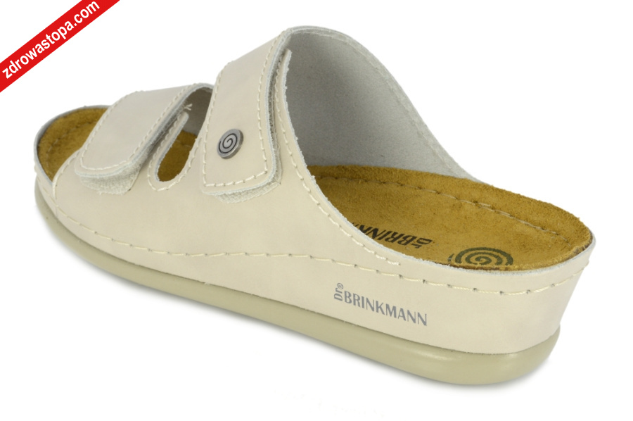 Dodatkowe informacje: wyprofilowane klapki damskie, z punktem na pięcie amortyzującym drgania, zapinane na dwie rzepy.