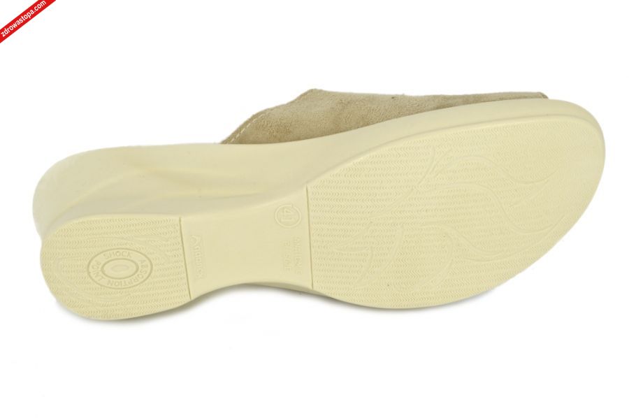 Dodatkowe informacje: Komfortowe klapki z gumka dopasowująca się do podbicia, odkryte palce, wysokość koturenka 55mm.