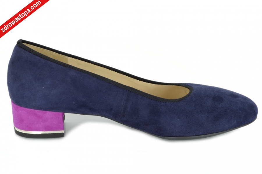 Dodatkowe informacje: Czółenko dookoła wykończone jest taśmą, która niweluje sztywność w podbiciu. Wykonane z miękkiej skóry zamszowej, skórzana wkładka HIGH SOFT, podeszwy elastyczne i antypoślizgowe. Wysokość obcasa 35 mm