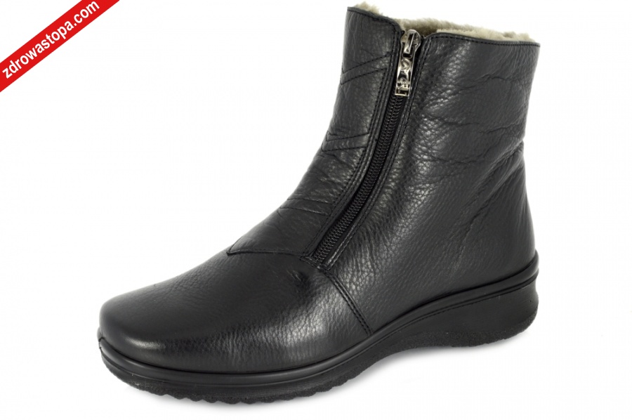 Dodatkowe informacje: Obuwie wykonane z bardzo miękkiej skóry naturalnej, suwak z boku ułatwiający zakładanie. Spody lekkie i antypoślizgowe. Wyjmowana miękka wkładka pozwala na zastąpienie jej własną np: ortopedyczną. Wysokość podwyższenia pod piętą 20mm.