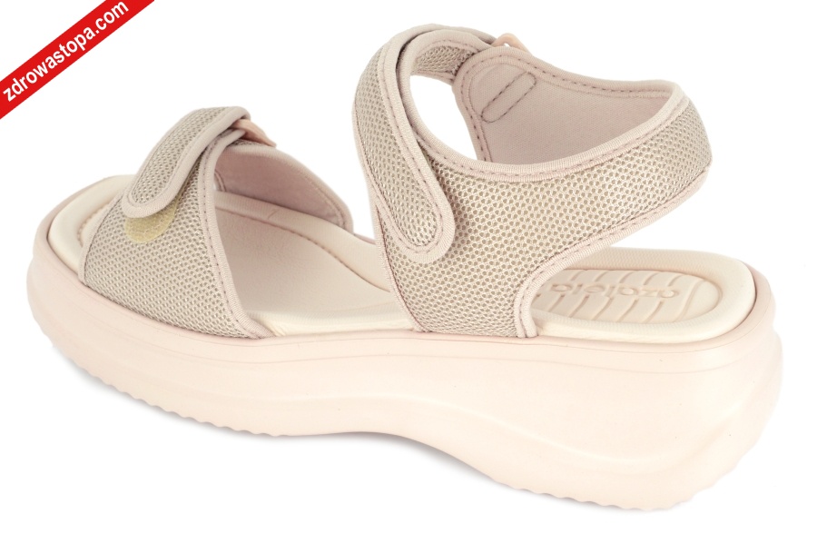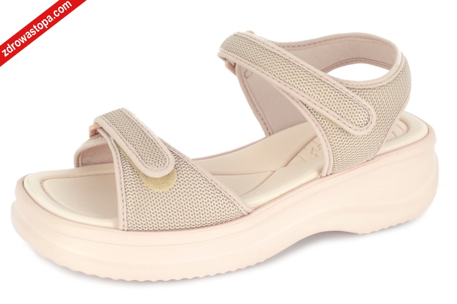 Dodatkowe informacje: wysokość klinu 45 mm, bardzo lekkie wykonane z naturalnych materiałów spody, sandały zapinane na dwie rzepy.