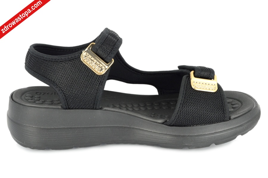 Dodatkowe informacje: wysokość klinu 45 mm, bardzo lekkie wykonane z naturalnych materiałów spody, sandały zapinane na dwie rzepy.