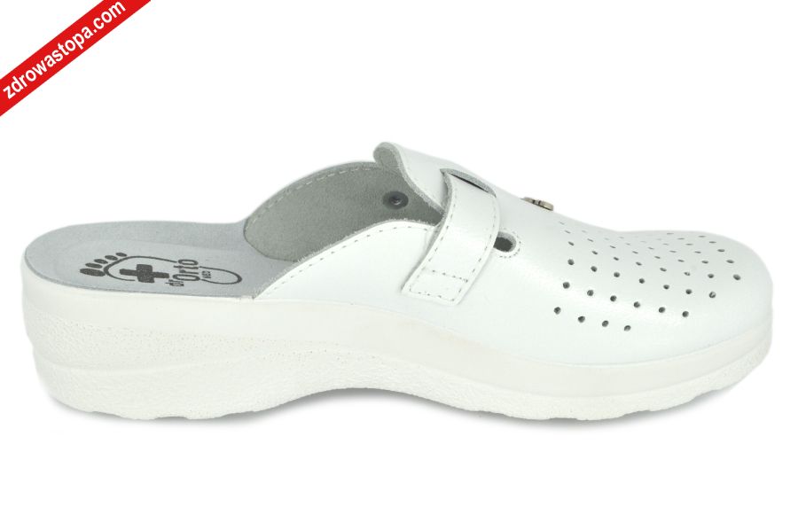Dodatkowe informacje: pasek z klamerką na podbiciu pozwala na idealne dopasowanie do stopy, zakryte palce, dzięki skórzanej wkładce i dziurkom w przedniej części stopa się nie poci, wysokość klinu: 30 mm. Spody wykonane z miękkiego tworzywa sztucznego, dobrze amortyzuje mikro wstrząsy.