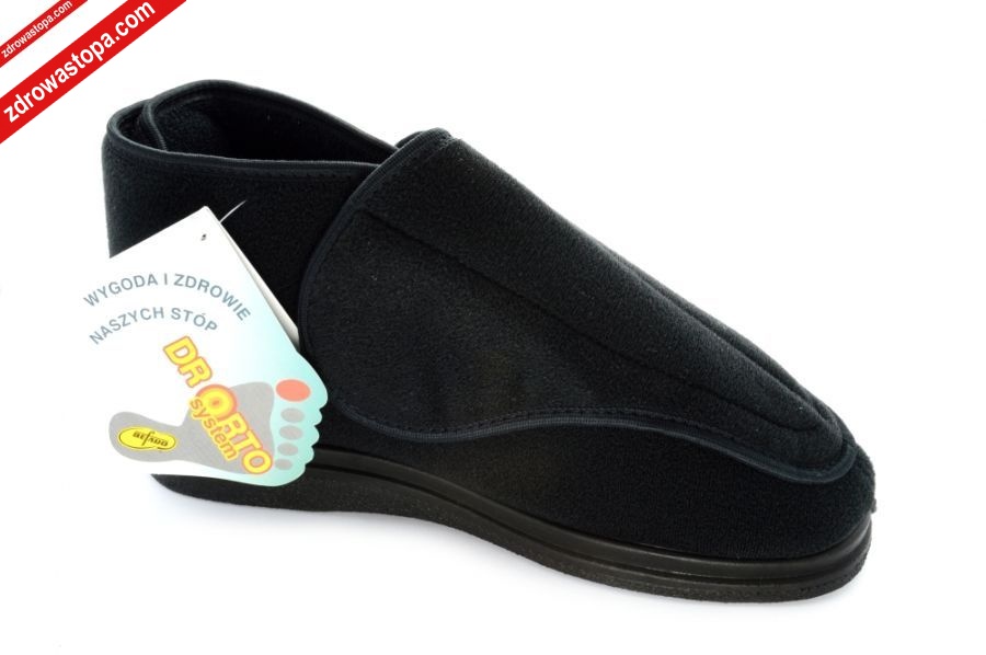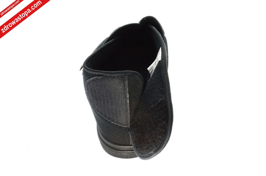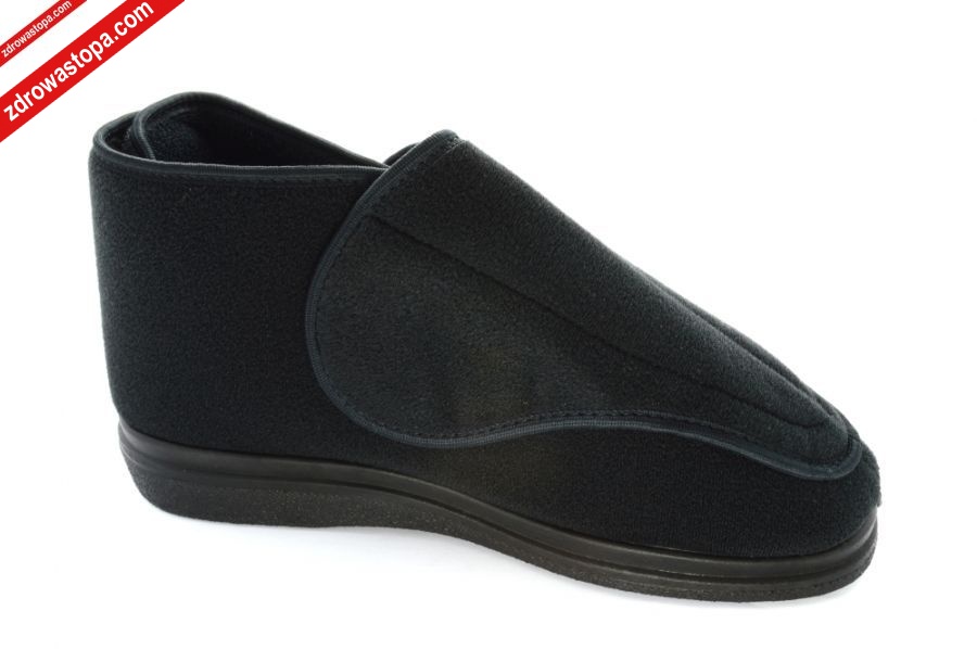 Dodatkowe informacje: obuwie tekstylne, materiał: microsidney-pianka-frotta wysokiej jakości, podwyższona tęgość (J) zapewnia odpowiednią przestrzeń w części palcowej, konstrukcja obuwia zapewnia łatwe jego wkładanie, minimalna ilość przeszyć i łączeń, dwie rzepy z przodu i jedna z tyłu pozwalają na optymalne dopasowanie do stopy (nawet tej obrzmiałej), lekka sprężysta podeszwa z pianki poliuretanowej pochłania mikro-wstrząsy, posiadają wyjmowaną wkładkę, znakomite na stopy wrażliwe, mogą być stosowane przez osoby z tzw. "zespołem stopy cukrzycowej”.