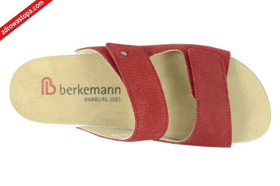Dodatkowe informacje: Jest to obuwie niemieckiej firmy BERKEMANN istniejącej od 1885 roku. Posiadają bardzo dobrze wyprofilowane wkładki wymienne. Ponadto posiadają punkty na piętach amortyzujące mikrowstrząsy. Wyścielone skórą garbowania roślinnego. Obuwie dobrze trzyma się na nodze dzięki zapięciu na dwie rzepy i zapewnia najwyższy komfort noszenia. Dzięki wyjmowanej wkładce można stosować zamiennie wkładki ortopedyczne. Podeszwa elastyczna nie ślizgająca się, wysokość koturna 60 mm.