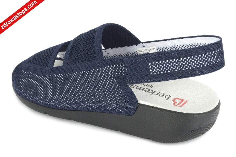 Dodatkowe informacje: Jest to obuwie niemieckiej firmy BERKEMANN istniejącej od 1885 roku. Posiadają bardzo dobrze wyprofilowane wkładki wymienne, ponadto posiadają punkty na piętach amortyzujące mikrowstrząsy. Wyścielone skórą garbowania roślinnego. Elastyczne gumki na podbiciu zapewniają idealne dopasowanie do stopy bez ucisku wrażliwych miejsc. Obuwie dobrze trzyma się na nodze i zapewnia najwyższy komfort noszenia. Dzięki wyjmowanej wkładce można stosować zamiennie wkładki ortopedyczne. Podeszwa lekka elastyczna nie ślizgająca się.