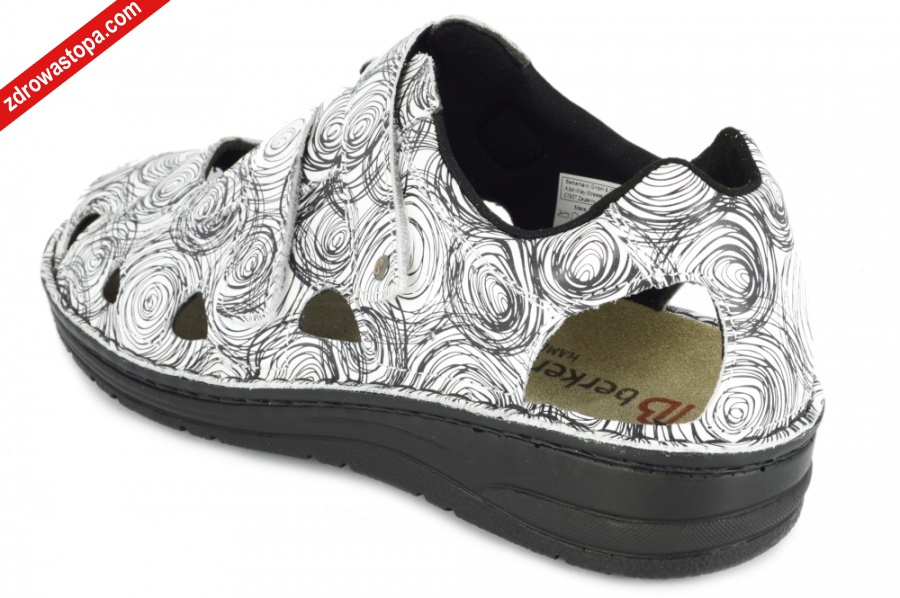 Jest to obuwie niemieckiej firmy BERKEMANN istniejącej od 1885 roku z linii BERKOFLEX. Posiada bardzo dobrze wyprofilowane wkładki wymienne przystosowane do prania. Ponadto posiadają punkty na piętach amortyzujące mikrowstrząsy. Oryginalna pięciofazowa wkładka w podeszwie wewnętrznej oraz zapięcie na dwa rzepy zapewnia dobrą regulację. Sprawiają, że obuwie dobrze trzyma się na nodze i zapewnia najwyższy komfort noszenia. Dzięki wyjmowanej wkładce można stosować zamiennie wkładki ortopedyczne. Podeszwa lekka, elastyczna, poszerzona, antypoślizgowa. Materiał wierzchni z miękkiej skóry. Wnętrze buta wyłożone bardzo przyjemną tkaniną obuwniczą.