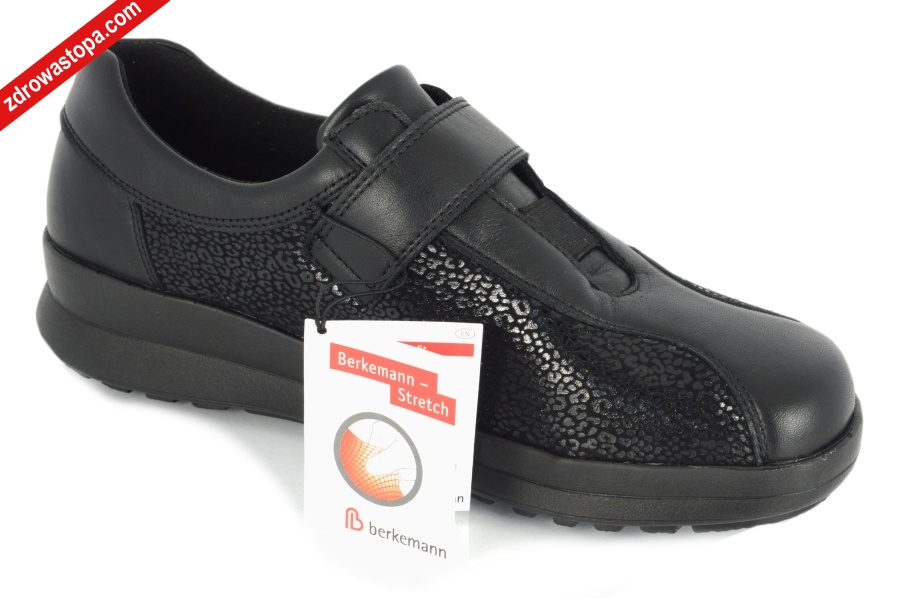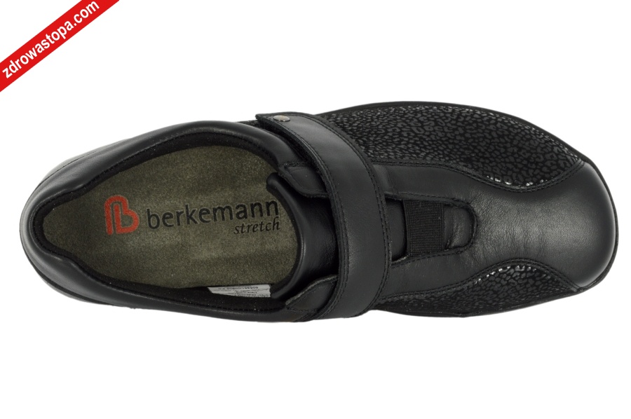 Jest to obuwie niemieckiej firmy BERKEMANN istniejącej od 1885 roku z wyjmowaną wkładką skórzaną garbowania roślinnego. Odpowiednie wyprofilowanie wkładki jak i też podeszwy sprawia stabilność półbuta. Podeszwa lekka, elastyczna i antypoślizgowa. Wierzch obuwia wykonany z skóry lico (bardzo miękkiej) plus stretch umożliwiający dopasowanie do każdej stopy. Obuwie tęgości K (szerokie) nie powodujące żadnego ucisku dla stopy. Zapinane na rzepa. W miejscach w których mogą wystąpić, ewentualne haluksów bardzo miękki strecz.