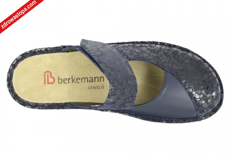 Dodatkowe informacje: Jest to obuwie niemieckiej firmy BERKEMANN istniejącej od 1885 roku z linii BERKOFLEX. Posiadają bardzo dobrze wyprofilowane wkładki wymienne przystosowane do prania. Ponadto posiadają punkty na piętach amortyzujące mikro wstrząsy. Wyścielone skórą garbowania roślinnego. Oryginalna pięciofazowa wkładka w podeszwie wewnętrznej oraz zapięcie na rzepę zapewnia dobrą regulację. Sprawiają, że obuwie dobrze trzyma się na nodze i zapewnia najwyższy komfort noszenia. Dzięki wyjmowanej wkładce można stosować zamiennie wkładki ortopedyczne. Podeszwa lekka elastyczna nie ślizgająca się. Materiał wierzchni ze skóry nubukowej ze specjalnym elastycznym bardzo miękkim materiałem obuwniczym na wysokości haluksa (stretch). Co powoduję komfort chodzenia nawet przy dużych haluksach.