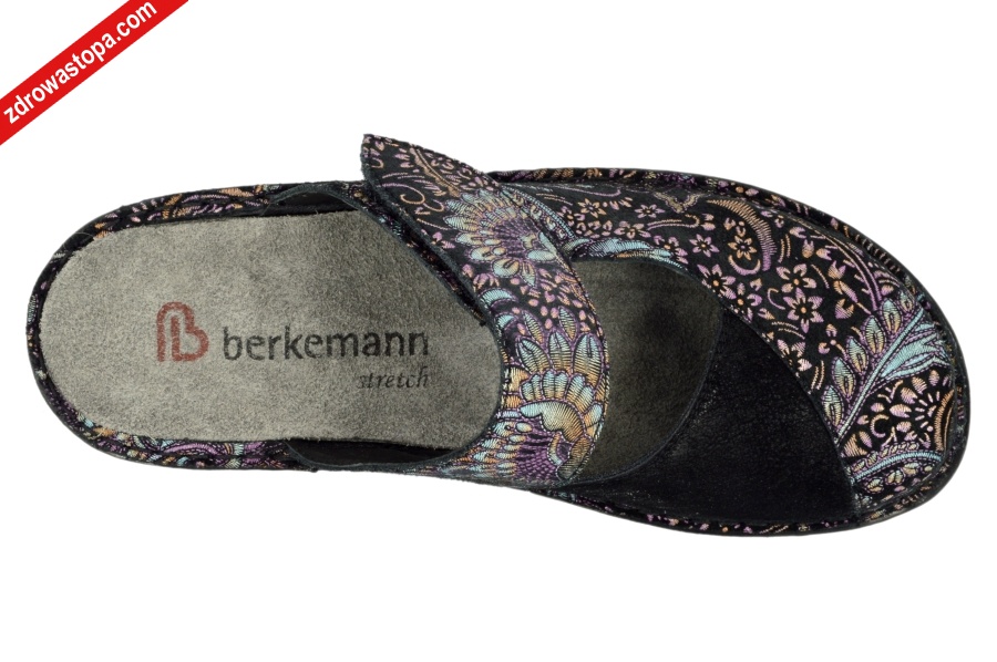 Jest to obuwie niemieckiej firmy BERKEMANN istniejącej od 1885 roku z linii BERKOFLEX. Posiadają bardzo dobrze wyprofilowane wkładki wymienne przystosowane do prania. Ponadto posiadają punkty na piętach amortyzujące mikrowstrząsy. Wyścielone skórą garbowania roślinnego. Oryginalna pięciofazowa wkładka w podeszwie wewnętrznej oraz zapięcie na rzepę zapewnia dobrą regulację. Sprawiają, że obuwie dobrze trzyma się na nodze i zapewnia najwyższy komfort noszenia. Dzięki wyjmowanej wkładce można stosować zamiennie wkładki ortopedyczne. Podeszwa lekka elastyczna nie ślizgająca się. Materiał wierzchni ze skóry cielęcej (leather) ze specjalnym elastycznym bardzo miękkim materiałem obuwniczym na wysokości haluksa (stretch). Co powoduję komfort chodzenia nawet przy dużych haluksach.