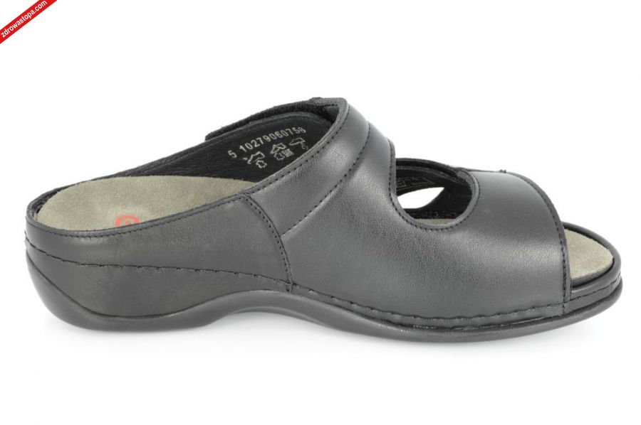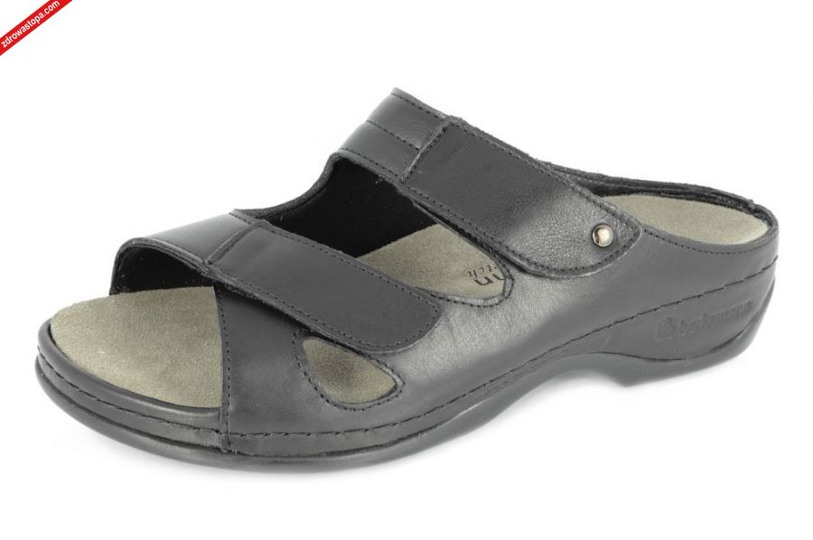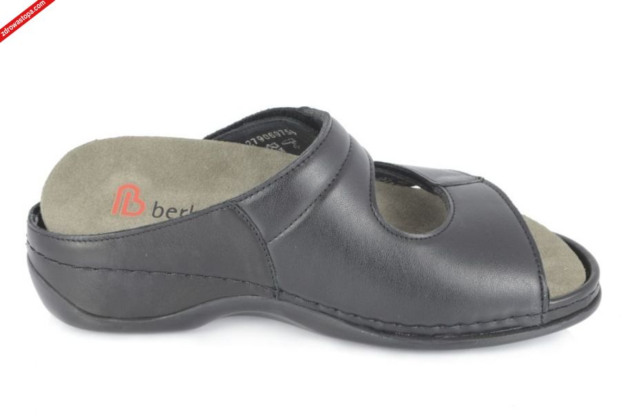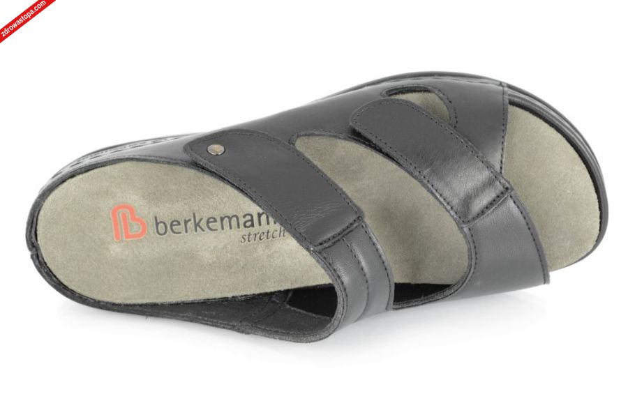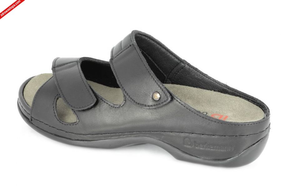 Dodatkowe informacje:Jest to obuwie niemieckiej firmy BERKEMANN istniejącej od 1885 roku z linii BERKOFLEX. Posiadają bardzo dobrze wyprofilowane wkładki wymienne przystosowane do prania. Wyścielone skórą garbowania roślinnego. Oryginalna pięciofazowa wkładka w podeszwie wewnętrznej oraz zapięcia na 2 rzepy zapewniają wiele możliwości regulacji. Sprawiają, że obuwie dobrze trzyma się na nodze i zapewnia najwyższy komfort noszenia. Dzięki wyjmowanej wkładce można stosować zamiennie wkładki ortopedyczne. Na wysokości haluksa klapek wykonany z materiału streczowego co dają duży komfort na obolałe wypukłości. Podeszwa lekka elastyczna nie ślizgająca się.