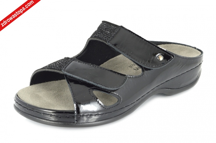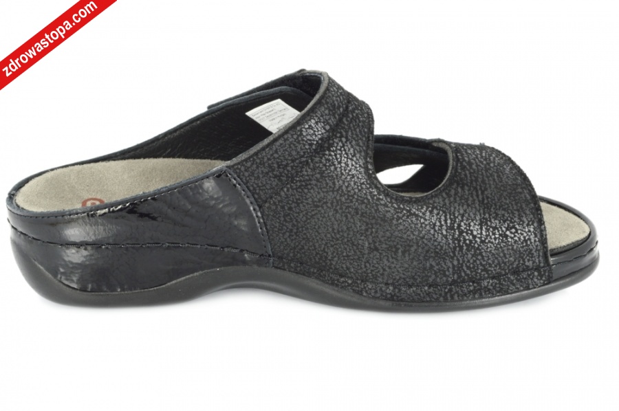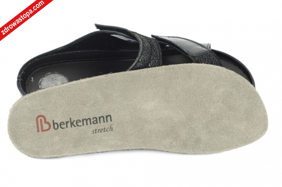 Dodatkowe informacje:Jest to obuwie niemieckiej firmy BERKEMANN istniejącej od 1885 roku z linii BERKOFLEX. Posiadają bardzo dobrze wyprofilowane wkładki wymienne przystosowane do prania. Wyścielone skórą garbowania roślinnego. Oryginalna pięciofazowa wkładka w podeszwie wewnętrznej oraz zapięcia na 2 rzepy zapewniają wiele możliwości regulacji. Sprawiają, że obuwie dobrze trzyma się na nodze i zapewnia najwyższy komfort noszenia. Dzięki wyjmowanej wkładce można stosować zamiennie wkładki ortopedyczne. Na wysokości haluksa klapek wykonany z materiału streczowego co dają duży komfort na obolałe wypukłości. Podeszwa lekka elastyczna nie ślizgająca się.