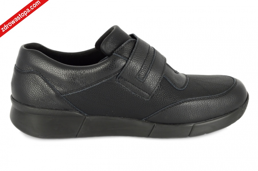 Dodatkowe informacje: specjalna linia obuwia męskiego o modnym wzornictwie, na rzepę, łatwa wsuwalność nawet na wysokie podbicie. Z przodu wierzch obuwia wykonany ze skóry połączonej z strechem, który dopasowuje się do stopy. Gruba elastyczna podeszwa idealnie amortyzująca drgania, antypoślizgowe podeszwy, dają komfort i stabilność chodzenia. Wyjmowana wkładka skórzana garbowania roślinnego, daje możliwość wymiany na swoją specjalną wkładkę.