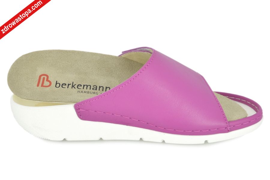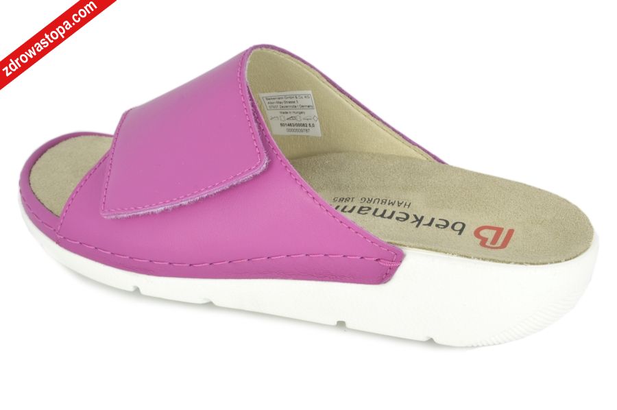 Dodatkowe informacje: Jest to obuwie niemieckiej firmy BERKEMANN istniejącej od 1885 roku z linii BERKOFLEX. Posiadają bardzo dobrze wyprofilowane wkładki wymienne przystosowane do prania. Ponadto posiadają punkty na piętach amortyzujące mikrowstrząsy. Wyścielone skórą garbowania roślinnego. Oryginalna pięciofazowa wkładka w podeszwie wewnętrznej oraz zapięcia na rzepy zapewniają wiele możliwości regulacji. Sprawiają, że obuwie dobrze trzyma się na nodze i zapewnia najwyższy komfort noszenia. Dzięki wyjmowanej wkładce można stosować zamiennie wkładki ortopedyczne. Podeszwa lekka elastyczna nie ślizgająca się.