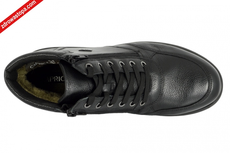 Dodatkowe informacje: Obuwie sznurowane gwarantuje dobre dopasowanie, zakładanie ułatwiają dwa suwaki po bokach, bardzo miękka skóra, ocieplane naturalnym futerkiem. Wkładka posiada system " onAIR " bazuje na zaczerpniętej z natury konstrukcji plastra miodu, gwarantuje szybkie odprowadzenie wilgoci, przepływ wewnątrz obuwia oraz doskonałą amortyzacje, spody antypoślizgowe.