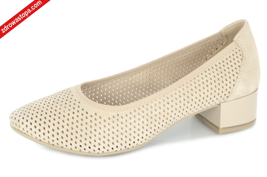 Dodatkowe informacje: specjalna linia obuwia damskiego eleganckiego, lekka sprężysta podeszwa pochłaniająca mikro-wstrząsy, podeszwa antypoślizgowa umożliwia bezpieczne poruszanie się na różnych nawierzchniach, poszerzona tęgość ''H'' (szersza), skórzane miękkie wkładki . Wkładka wyścielona naturalną skóra, posiada system " onAIR " bazuje na zaczerpniętej z natury konstrukcji plastra miodu, gwarantuje szybkie odprowadzenie wilgoci, przepływ wewnątrz obuwia oraz doskonałą amortyzacje. Obuwie spełnia oczekiwania najbardziej wymagających odbiorców. Idealne dopasowanie do kształtu stopy.