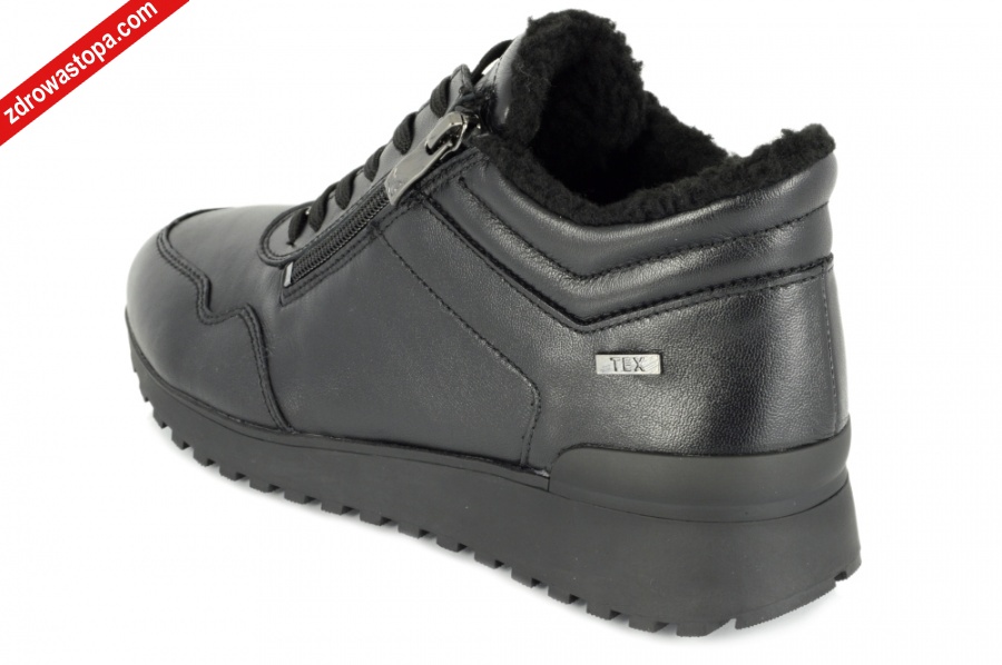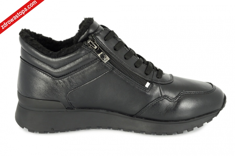 Dodatkowe informacje: Obuwie sznurowane gwarantuje dobre dopasowanie, zakładanie ułatwiają suwaki po boku, bardzo miękka skóra, ocieplane naturalnym futerkiem. Wyjmowana wkładka posiada system " onAIR " bazuje na zaczerpniętej z natury konstrukcji plastra miodu, gwarantuje szybkie odprowadzenie wilgoci, przepływ wewnątrz obuwia oraz doskonałą amortyzacje, spody antypoślizgowe.