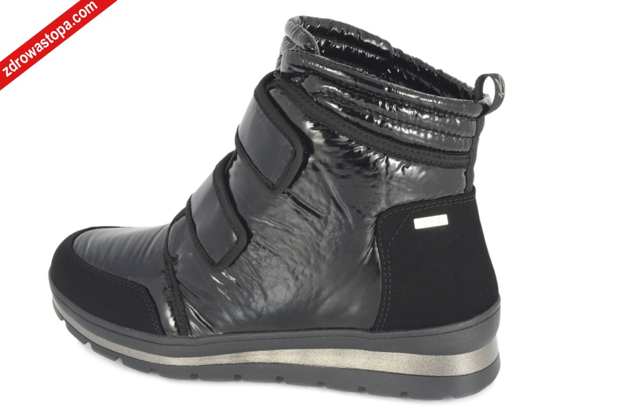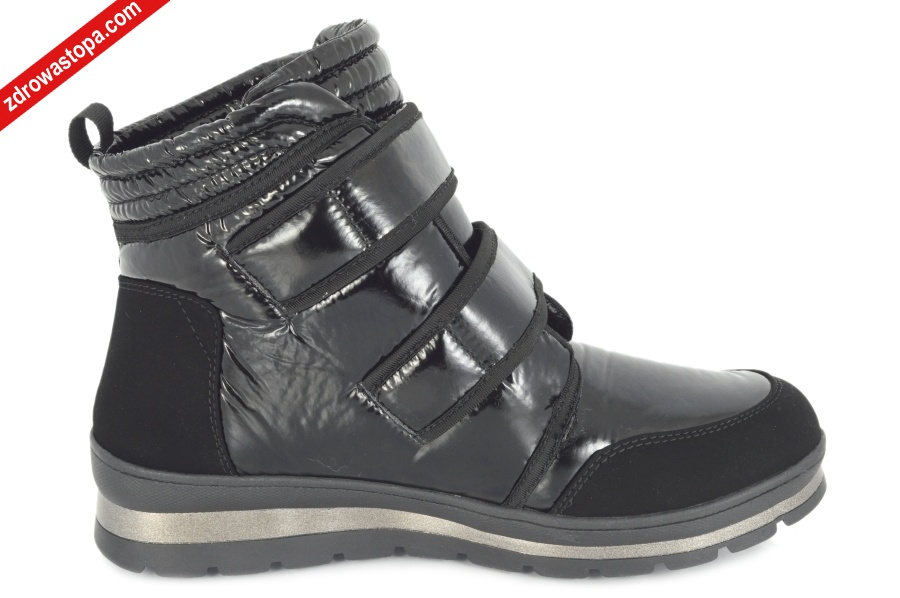 Dodatkowe informacje: Wygodne zakładanie dzięki zapięciu na dwie rzepy, ocieplane naturalnym futerkiem. Wyjmowana wkładka posiada system " onAIR " bazuje na zaczerpniętej z natury konstrukcji plastra miodu, gwarantuje szybkie odprowadzenie wilgoci, przepływ wewnątrz obuwia oraz doskonałą amortyzacje, spody antypoślizgowe.