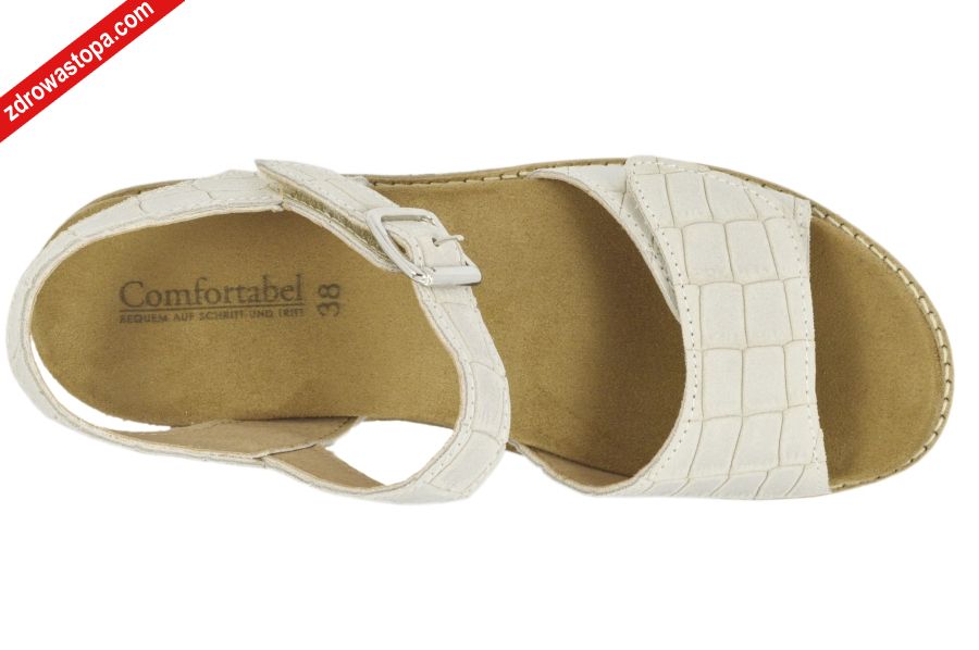 Dodatkowe informacje: Wysokość obcasa: 50mm. Zapinane na rzepę, rzep w palcach pozwala na dopasowanie do stopy. Gruba miękka, wyjmowana wkładka pozwala na wymianę na swoją np. ortopedyczną. Elastyczne i antypoślizgowe podeszwy.