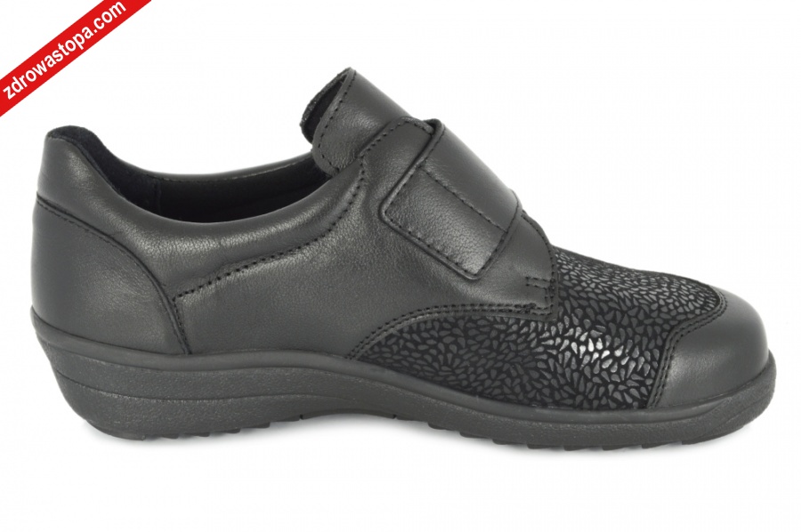Dodatkowe informacje: Obuwie zapinane na rzepę, wykonane z miękkiej skóry naturalnej a w przedniej części z materiału który nie uciska na wrażliwe miejsca. Bardzo lekkie, posiadające wyjmowaną wkładkę, elastyczne spody i antypoślizgową podeszwę.