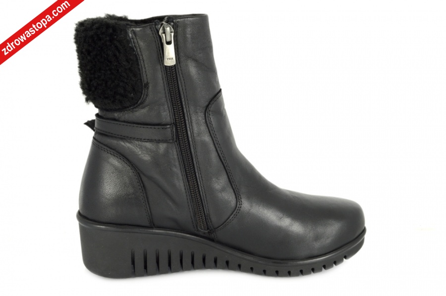 Dodatkowe informacje: Nowoczesny fason, suwak z boku. Wykonane z bardzo miękkiej skóry, pasek z regulacją na wysokości kostki. Elastyczne i antypoślizgowe spody absorbujące drgania, wysokość klinu 45mm. Wnętrze butów wykończone miękkim futerkiem, wyjmowana miękka wkładka.