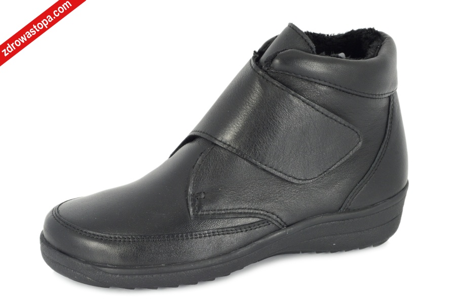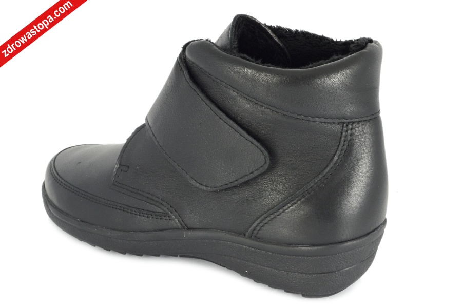 Dodatkowe informacje: Nowoczesny fason, rzepa ułatwiające zakładanie. Wykonane z miękkiej skóry. Elastyczne i antypoślizgowe spody absorbujące drgania, wysokość klinu 45mm. Wnętrze butów wykończone miękkim futerkiem, wyjmowana miękka wkładka.