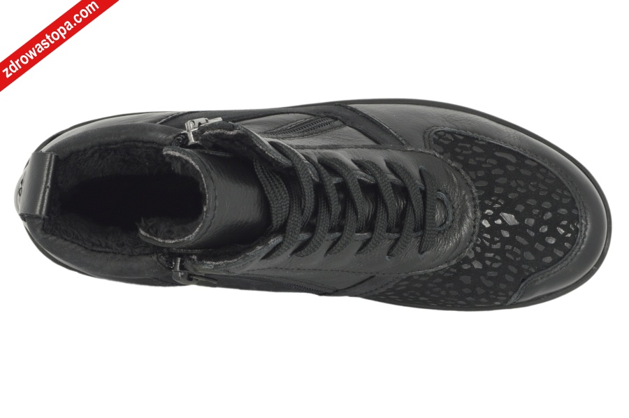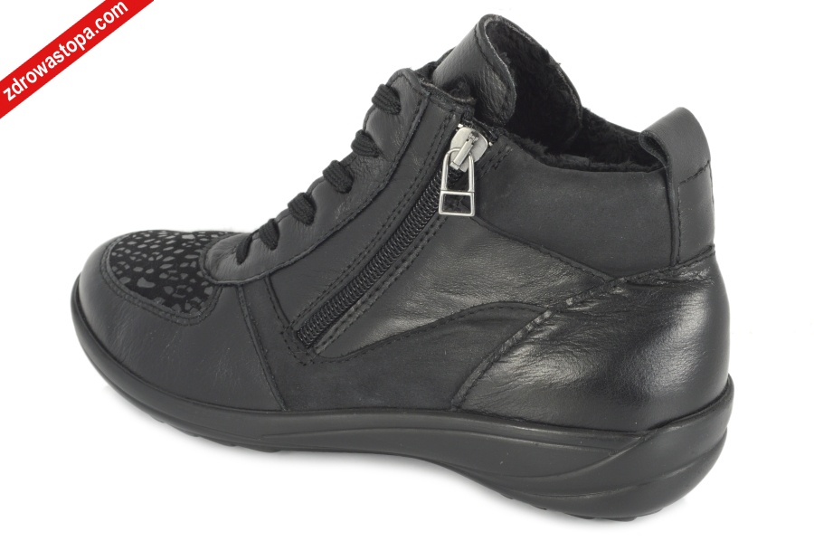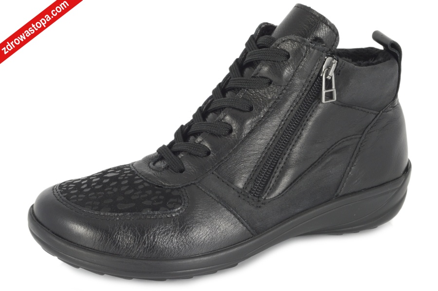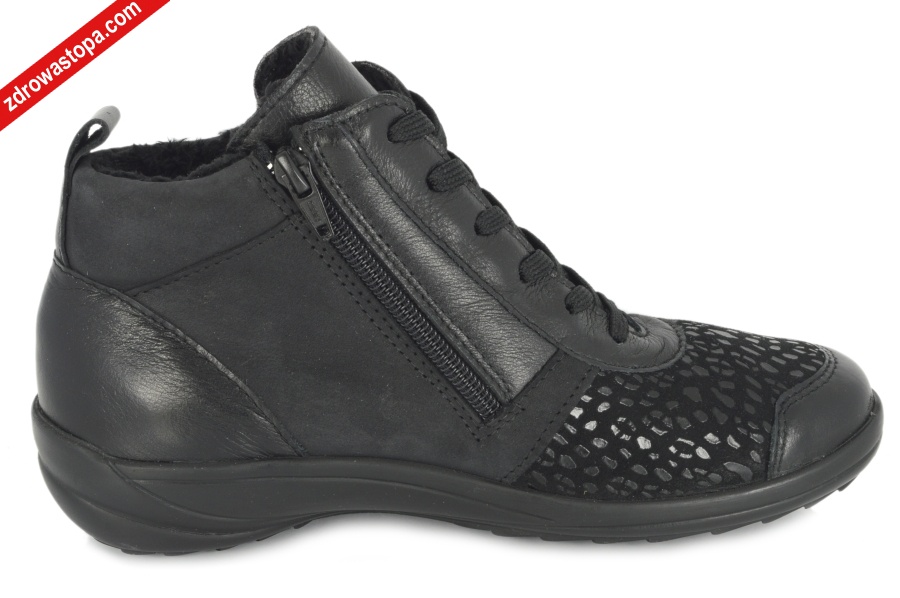 Dodatkowe informacje: Sznurowane, zakładanie ułatwiają 2 suwaki po bokach, bardzo miękka skóra, ocieplane naturalnym futerkiem, wkładka miękka wyjmowana, spody antypoślizgowe. W przedniej części zastosowano elastyczny stretch dzięki czemu obuwie dopasowuje się do stóp z problemami.