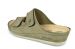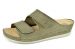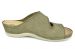 Dodatkowe informacje: wyprofilowane klapki damskie w kolorze olivkowym, skórzane, z punktem na pięcie amortyzującym drgania, zapinane na dwa rzepy.
