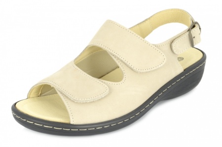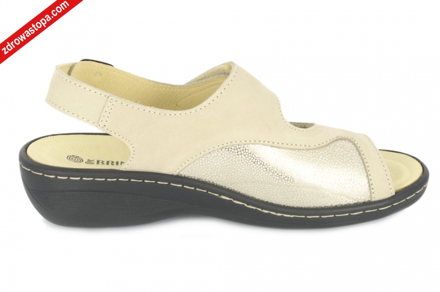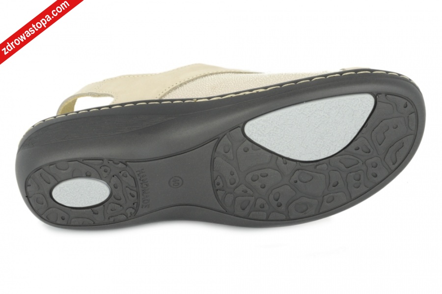Dodatkowe informacje: wysokość klinu: 35 mm, zapięcie na dwie rzepy na podbiciu. Regulowany pasek na pięcie. Skórzana, wyjmowana wkładka profilowana z punktem na pięcie amortyzującym drgania. Od wewnętrznej strony tkanina streczowa w celu wymiękczenia na ewentualnych haluksach.