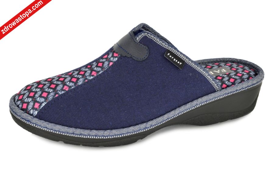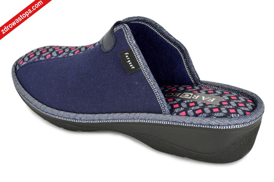 Dodatkowe informacje: Bardzo wygodne kapcie damskie na niewielkim koturenku 35mm. Wkładka bardzo miękka. Nadają się dla stóp problematycznych (haluksy).