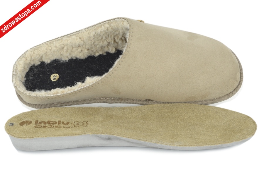 Dodatkowe informacje: Nowoczesna forma kapcia, wyjmowaną skórzaną wkładkę można zastąpić swoją np :ortopedyczną. Spód lekki profilowany z poliuretanu. Użycie wyżej wymienionych surowców wpływa na wysoki komfort użytkowania.