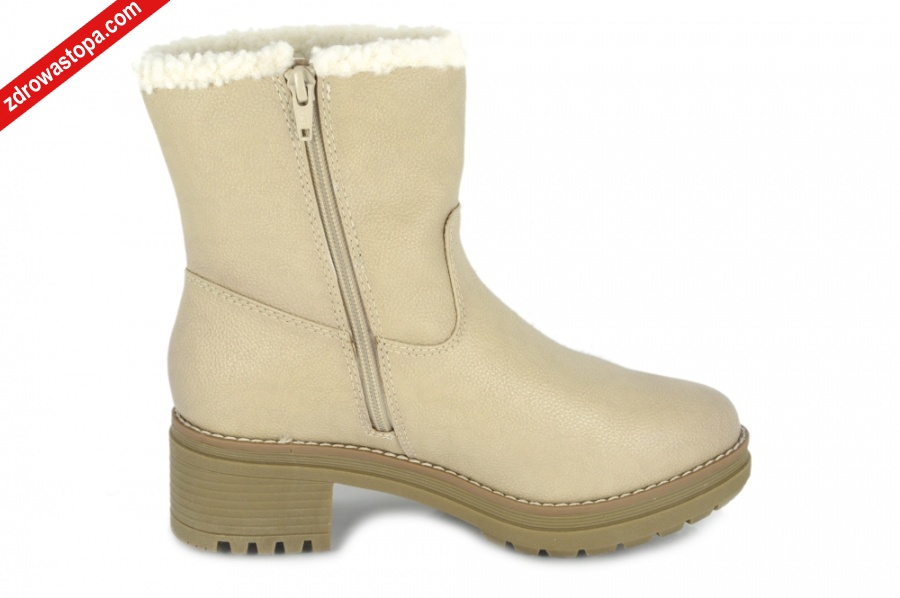 Dodatkowe informacje: Bardzo wygodne w zakładaniu dzięki suwakowi z boku. Środek wykończona miękka wełną, wyjmowana wkładka. Spody elastyczne i antypoślizgowe, wysokość obcasa 55mm. Obuwie jest bardzo lekkie i posiada membranę TEX uniemożliwiającą przemakanie butów