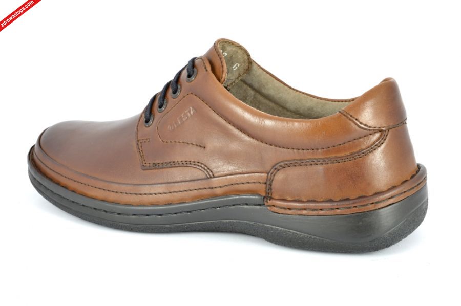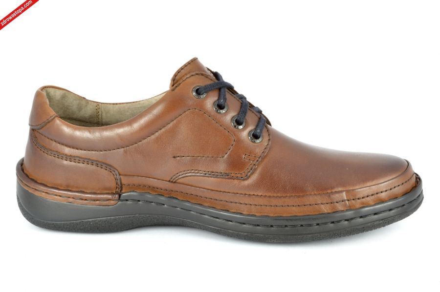 Dodatkowe informacje: półbuty męskie sznurowane, wykonane z bardzo miękkiej skóry licowej, wkładka skórzana, środek cały ze skóry plus materiał obuwniczy w przedniej części buta.