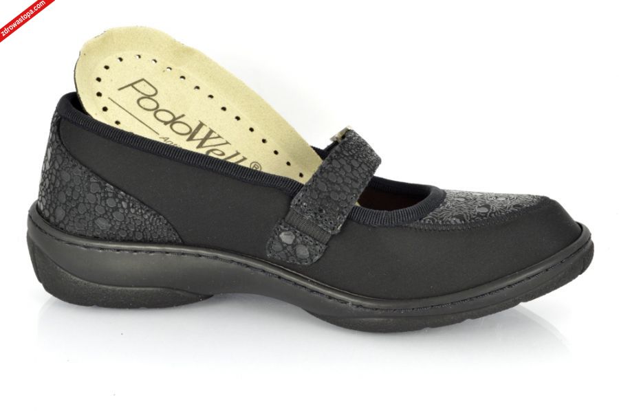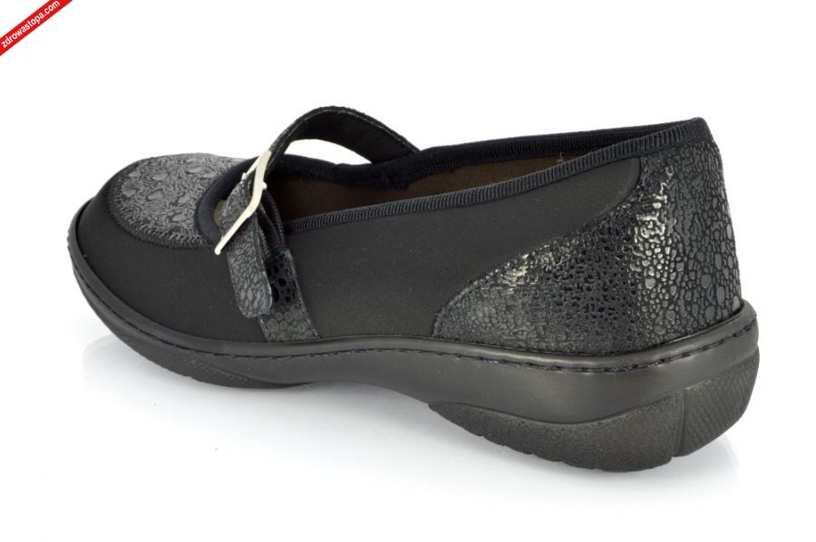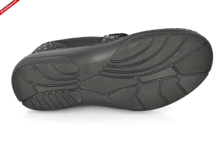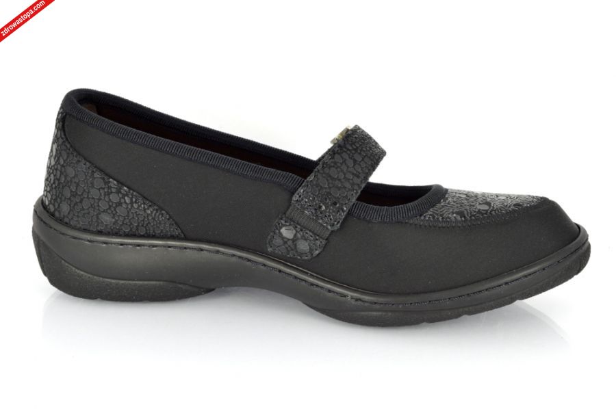Dodatkowe informacje: obuwie zapinane na rzepę, poszerzona tęgość "K", łatwa wzuwalność. Wysokość klinu 20 mm.