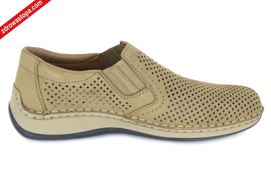 Dodatkowe informacje: Obuwie wsuwane, dobre dopasowanie do stopy zapewniają dwie gumki na podbiciu. Wykonane z miękkiej skóry perforowanej dzięki czemu stopy się nie pocą. Wewnątrz wkładka wymiękczona. Spody lekkie, elastyczne, antypoślizgowe.