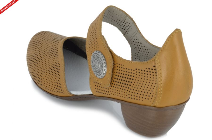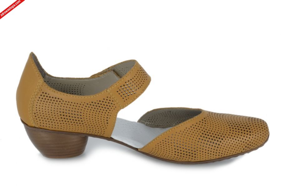 Dodatkowe informacje: wysokość obcasa: 30 mm. Zapinane na rzepę. Palce i pięta zakryta, dziurki na całości poprawiają przewiewność obuwia. Spód antypoślizgowy.