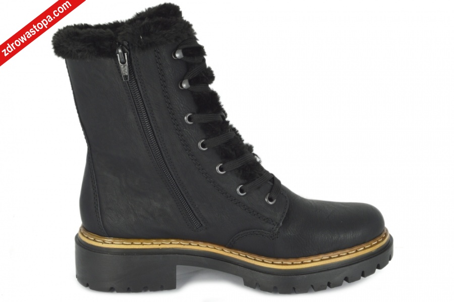 Dodatkowe informacje: Najnowsza kolekcja botka damskiego firmy RIEKER ,model bardzo łatwo wsuwalny dzięki zapięciu na suwak. Miękka wkładka z filcu. Podeszwa botka gruba dobrze absorbująca drgania, nieślizgająca się.