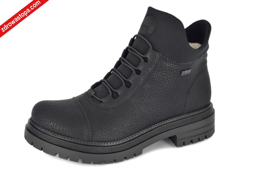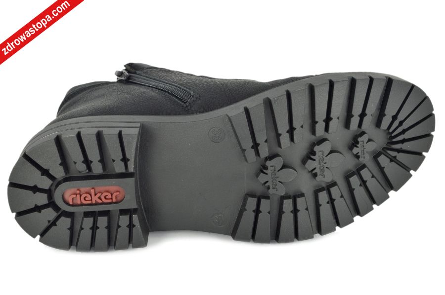 Dodatkowe informacje: Najnowsza kolekcja botka damskiego firmy RIEKER, gumki i streczowy język dobrze dopasowują się do stopy ,model bardzo łatwo wsuwalny dzięki zapięciu na suwak. Miękka wkładka z filcu. Podeszwa botka gruba dobrze absorbująca drgania, nieślizgająca się.