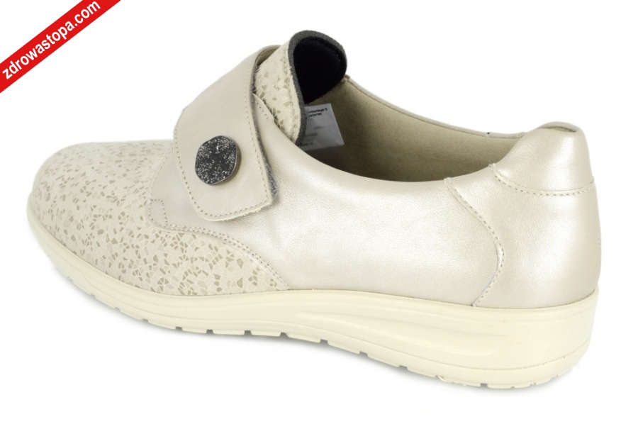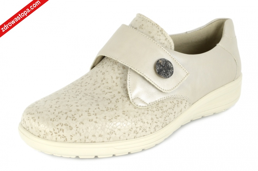Dodatkowe informacje: Zapięcie na rzepę zapewnia dobre dopasowanie do stopy. Przednia część wykonana z dopasowującego się materiału. Wysokość podwyższenia pięty 26mm. Wyjmowana wkładka. Lekkie i elastyczne spody.