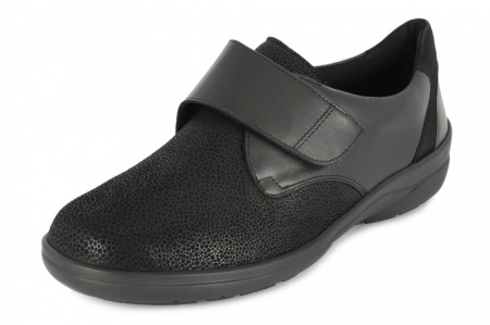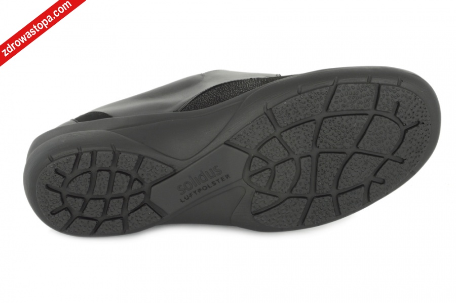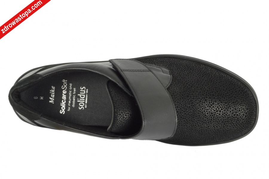 Dodatkowe informacje: Zapięcie na rzepe dobrze utrzymuje obuwie na stopie . Wykonane z bardzo miękkiej skóry oraz materiału strechowego w przedniej części, który dopasowuje się i nie uciska problematycznych miejsc na stopach (haluksy, obtarcia). Wysokość klinu 30 mm. Wyjmowane skórzane wkładki z pelotą. Obuwie SOLIDUS jest produkowane z najwyżej jakości skór i materiałów. Produkt NIEMIECKI. Firma SOLIDUS istnieje od 1910 r.