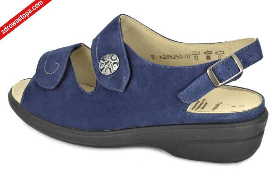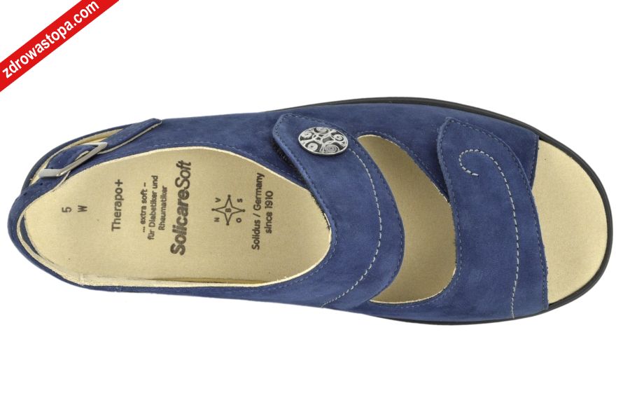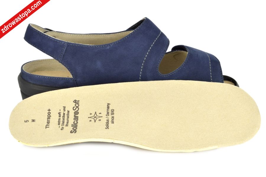 Dodatkowe informacje: Przednie paski zapinane na rzepy oraz tylny pasek zapinany na zatrzask. Wykonane z bardzo miękkiej skóry, wysokość klinu 30 mm, wyjmowane wkładki. Obuwie SOLIDUS jest produkowane z najwyżej jakości skór i materiałów. Produkt NIEMIECKI. Firma SOLIDUS istnieje od 1910 r.