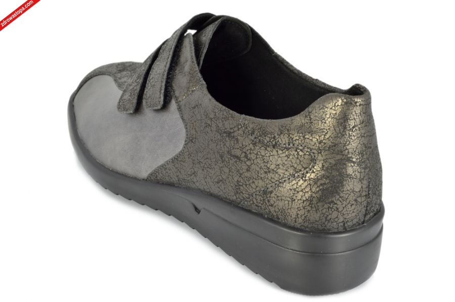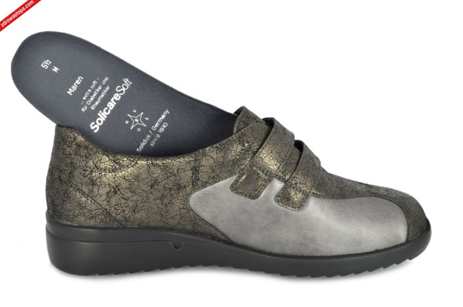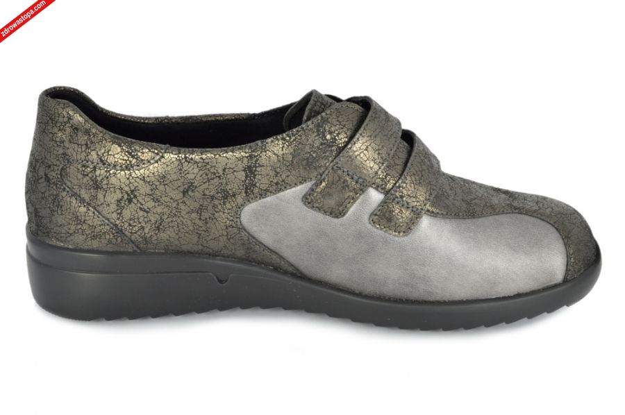 Dodatkowe informacje: Obuwie zapinane na dwie rzepy pozwala na dobre dopasowanie do stopy, po bokach wstawki z elastycznego materiału typu strech który dopasowuje się i nie uciska wrażliwych miejsc na stopach. Wyjmowana wkładka skórzana pozwala na zastąpienie jej swoją np:ortopedyczną. Lekkie, elastyczne i antypoślizgowe spody.